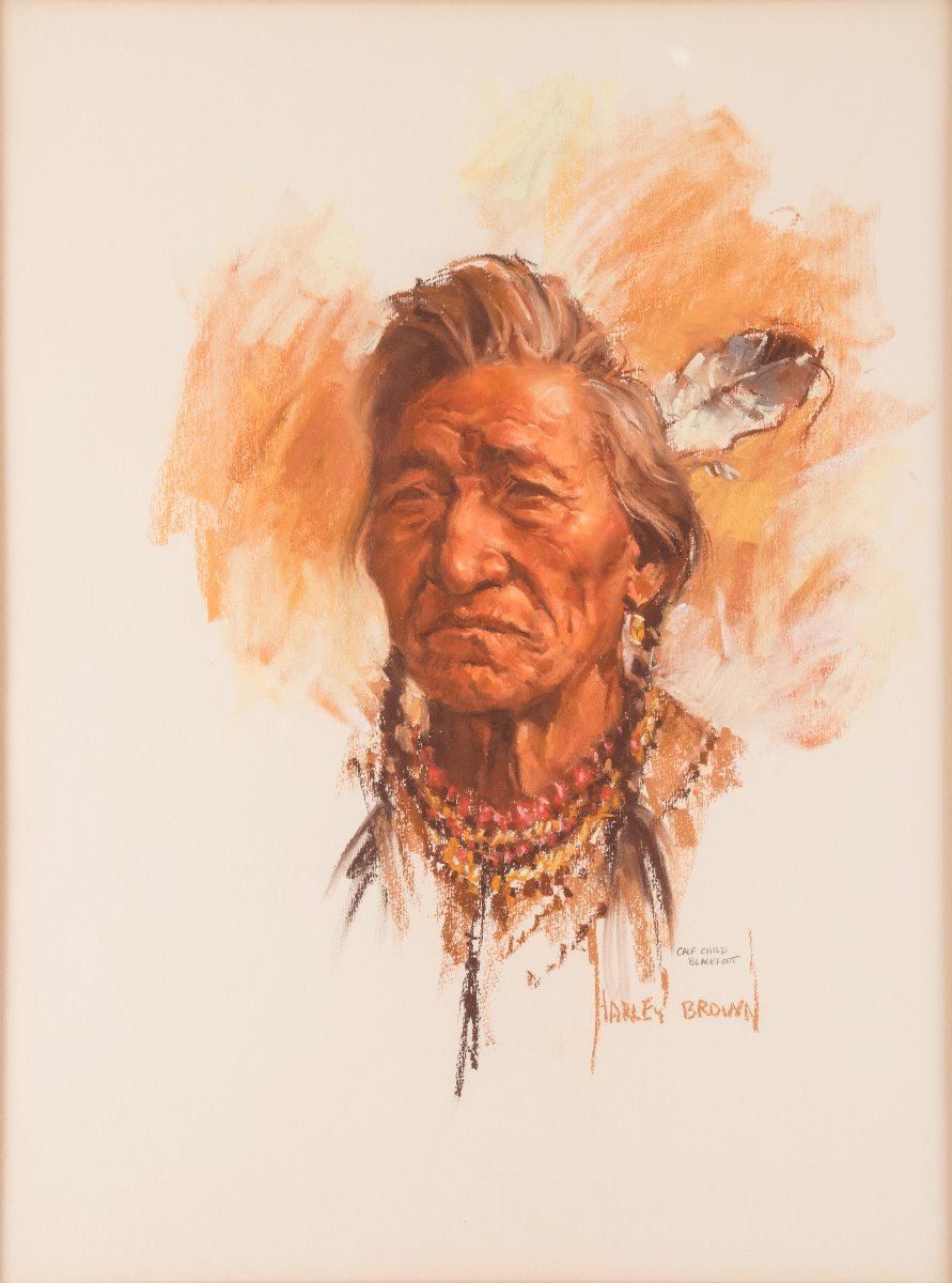 Harley Brown (1939 - )(CA). Calf Child-Blackfoot. 24" x 18" pastel. Signed and titled lower right.