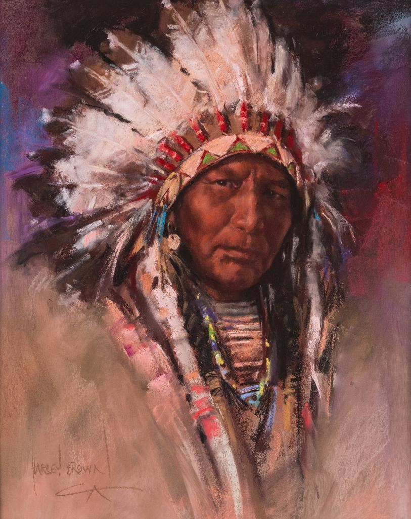 Harley Brown (1939 - )(CA) Chief 19.5" x 15.5" pastel Signed lower left, CA $4,000-5,000