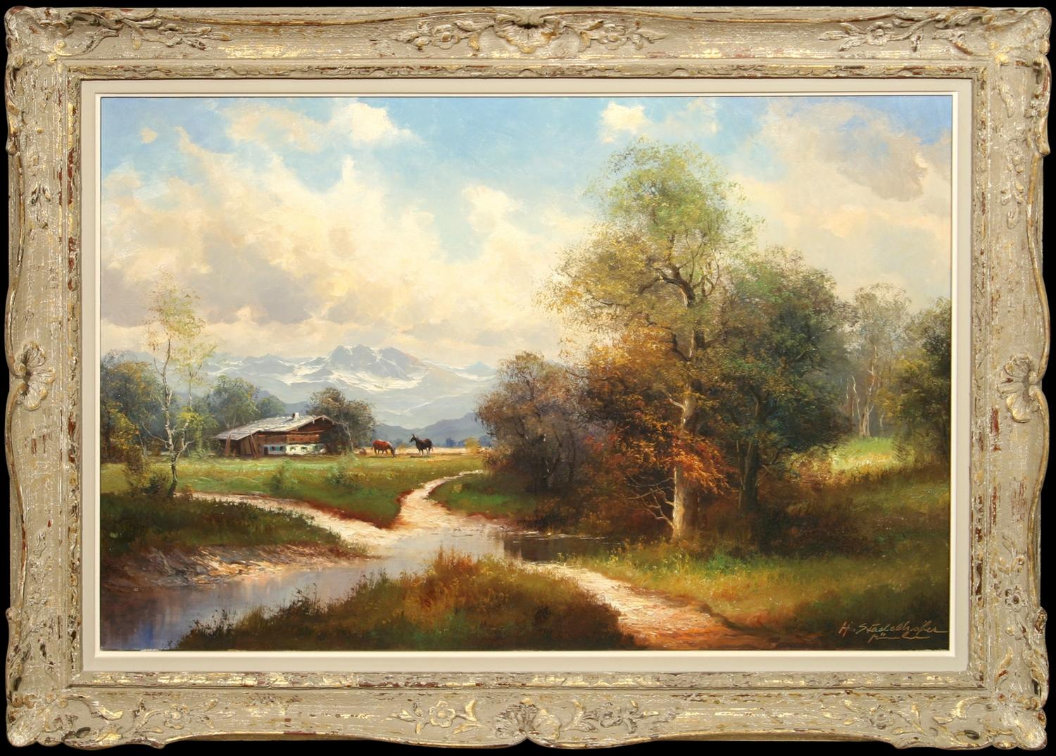 Helmet Stadelhofer (1914-1979). Barn With Horses. 24" x 36" oil on canvas. signed lower right. (est $1,000-2,000) Condition Report: Black lights clean