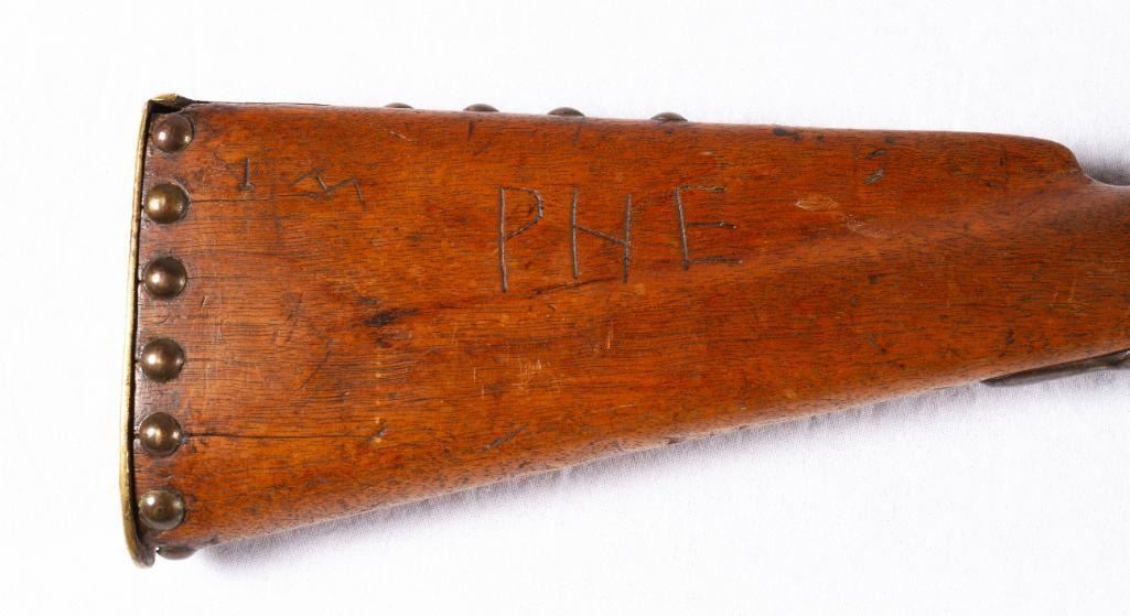 45" overall. Stamped with Hollis HandS monogram on lock behind hammer. Initials PHE carved into stock. Circa 1860.