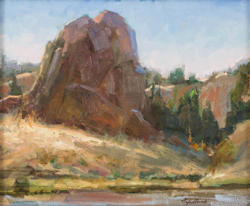 Howard Friedland (1945 - ) Three oils: 1) Labarge on the Missouri 10" x 12" oil on canvasboard Signed lower right 2) Along the Madison 10" x 12" oil on canvasboard Signed lower right 3) Ancient Portal 9.25" x 11.5" oil on canvasboard Signed lower left $1,000-1,500