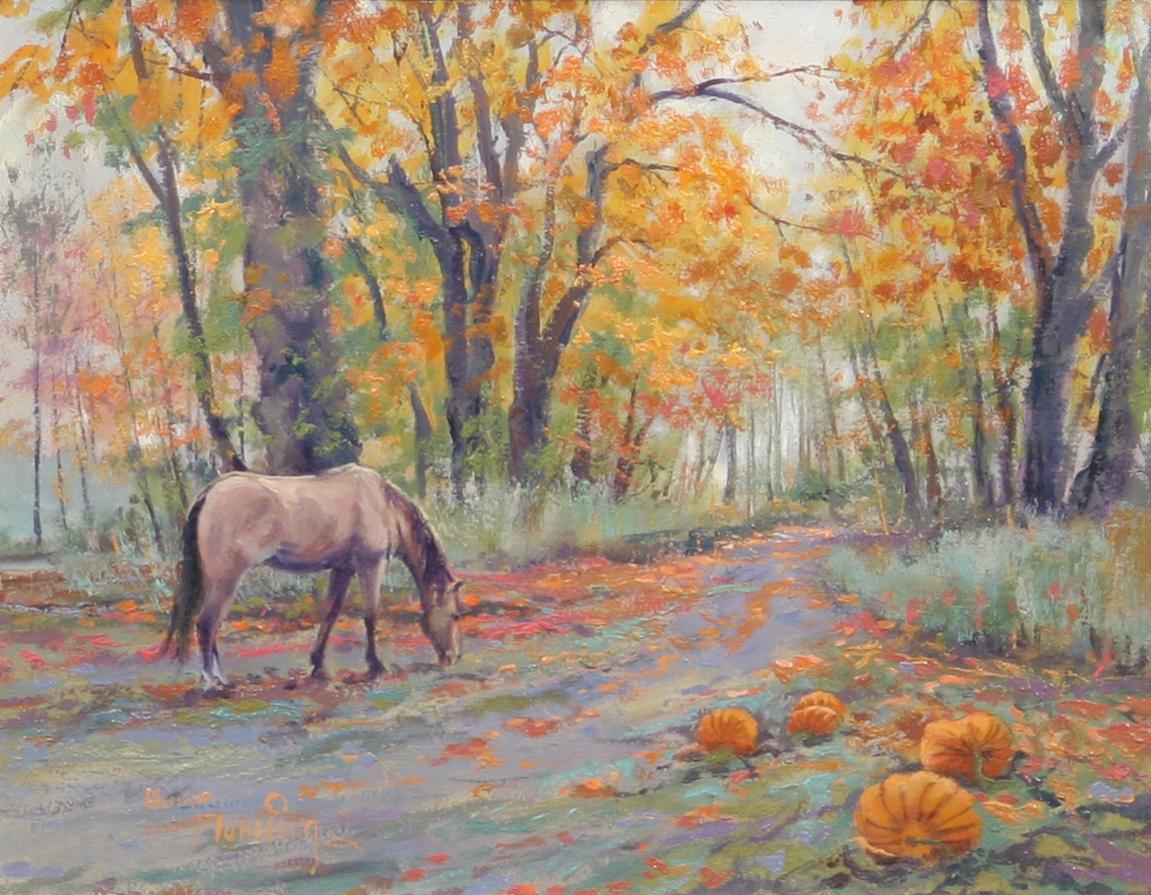 Hulan Fleming (b. 1933). Pumpkins. 11" x 14" oil on board. signed lower right. (est $1,500-2,500) Condition Report: Black lights clean