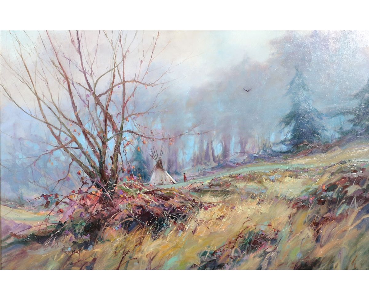 Hulan William Fleming (1933 - ). Morning Fog. 20" x 30" oil on canvas. Signed lower left: Hulan Fleming.