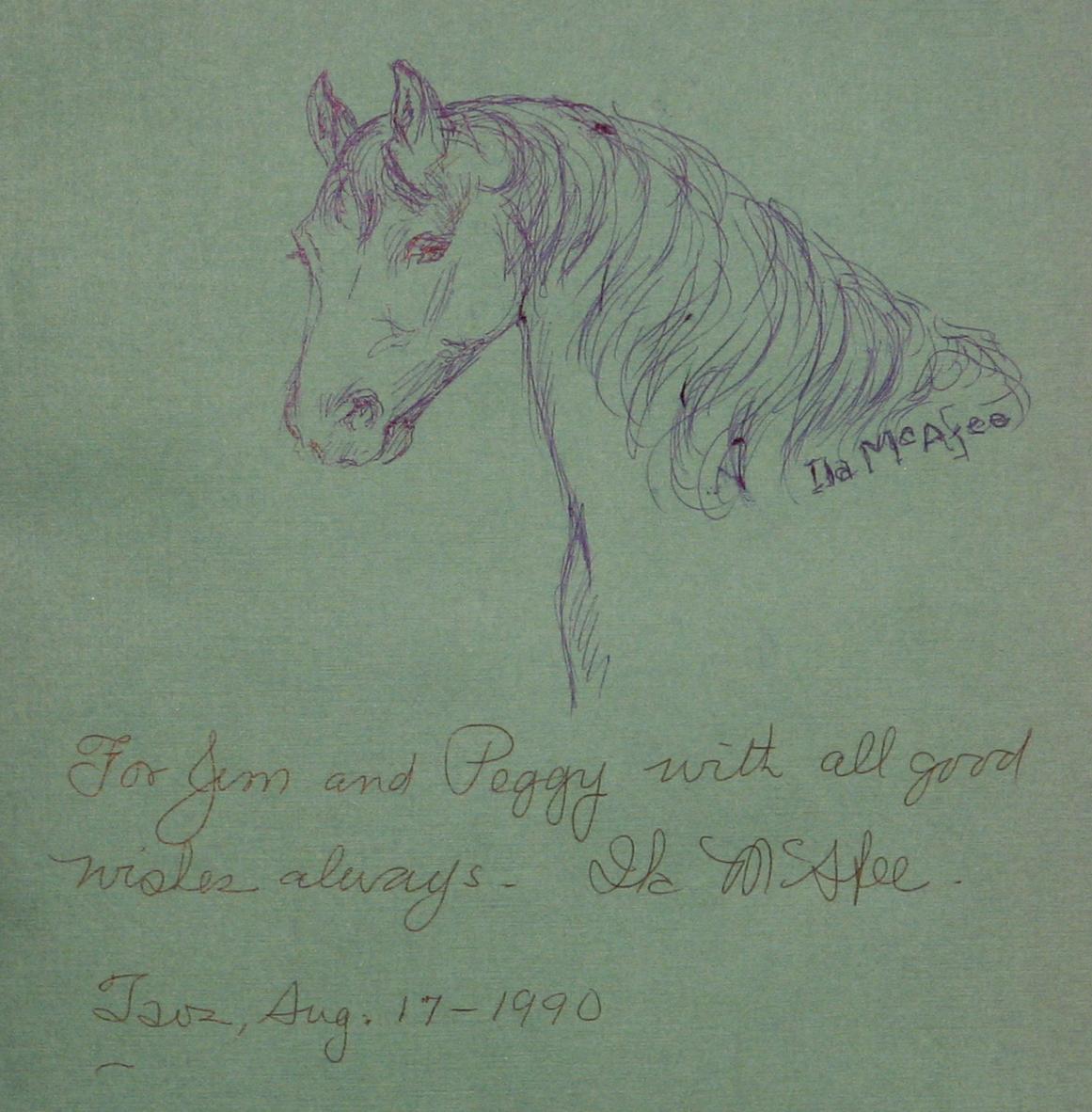 Ila Mae McAfee, Ink sketch inside the book Indians, Horses, Hills, Et Cetera