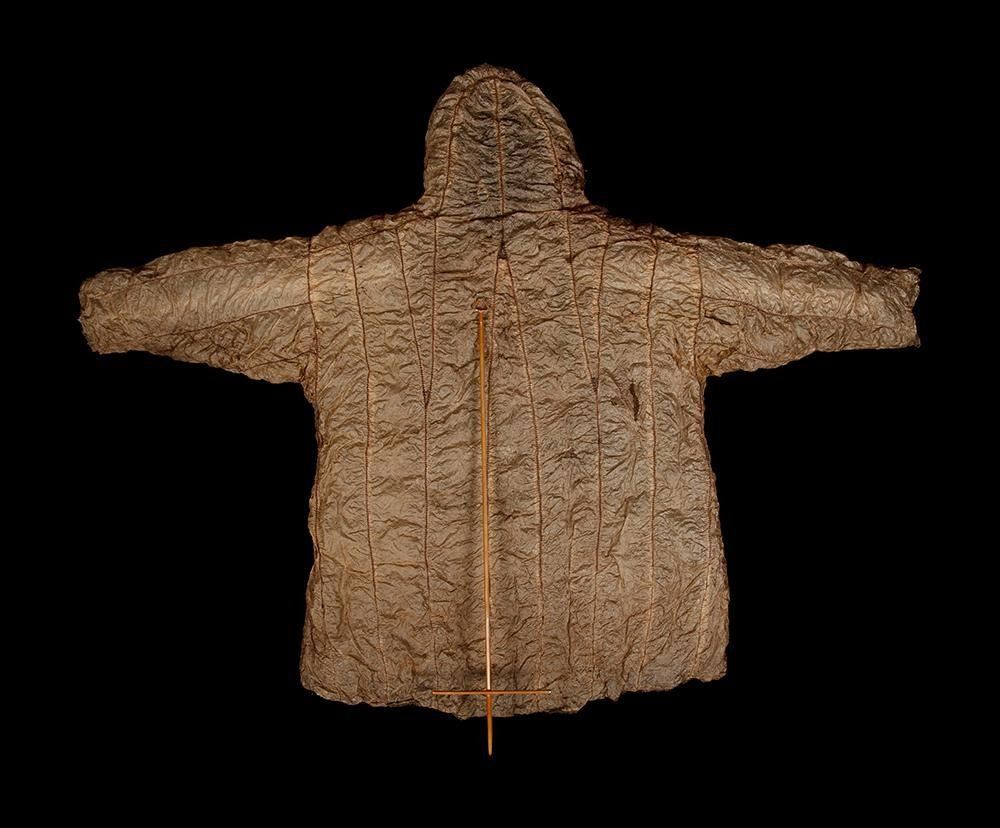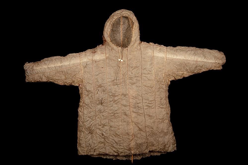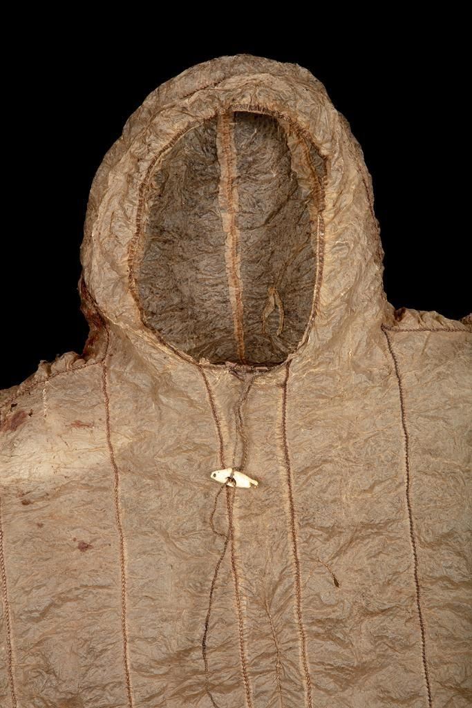 *A “seal gut” garment refers to a traditional jacket/coat made from the intestines or gut of seals. Among some indigenous Arctic cultures, particularly in places like Alaska and parts of Northern Canada, these jackets were historically crafted for protection against cold and harsh weather conditions.