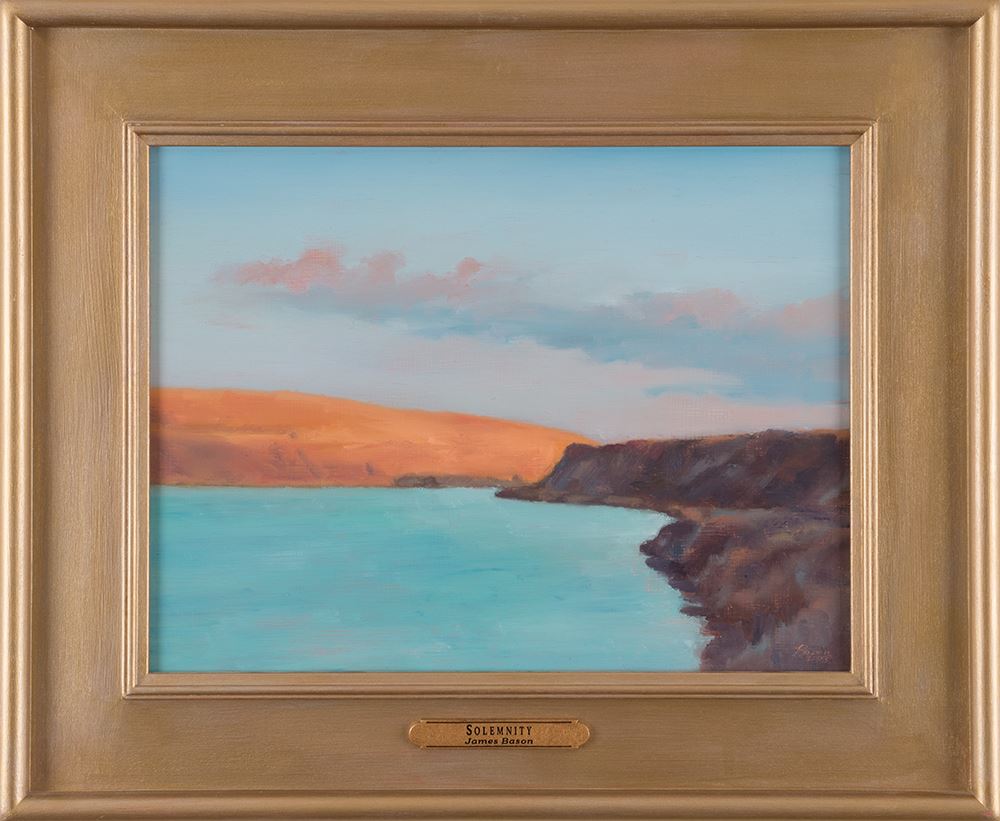 James Bason (1962 - ). Five works: 1) Missouri River and Train Trestle - February. 8" x 10" oil on board. 2) From Above Rainbow Falls. 8" x 10" oil on board. 3) Beyond Rainbow Falls - February. 9" x 12" oil on board. 4) Solemnity. 9" x 12" oil on board. 5) Missouri River Dusk