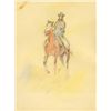 James Kenneth Ralston (1896 - 1987). Three works: Watching the Herd, 5.25" x 7.25" watercolor and ink, signed lower right: J K RALSTON. Old Lizzy, 12" x 16" oil on board, signed lower right: J K RALSTON - ©, with inscription: Long time we been out with the stock, And braved the winter snow, We've tailed old lizzy up again, To see the rodeo. Cowboy on Horseback, 7.75" x 5.75" colored pencil, unsigned.
