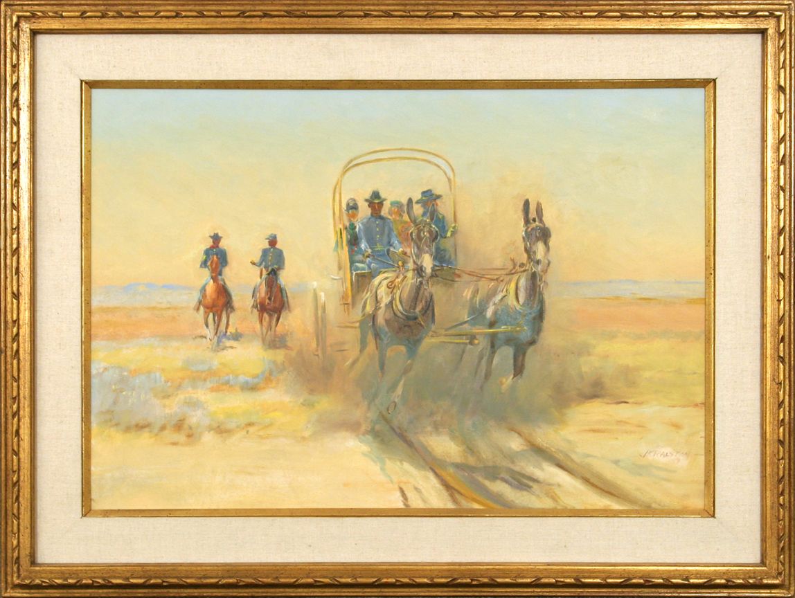 James Kenneth Ralston (1896 - 1987). Arrival - Army Wives. 21.5" x 31" oil on canvas. Signed lower right: J. K. RALSTON -47. Condition reports can be viewed at www.marchinmontana.com/docs/2013CR.pdf