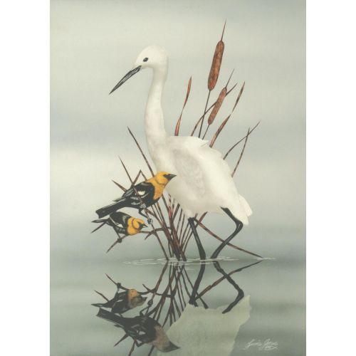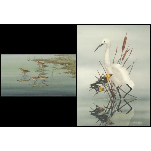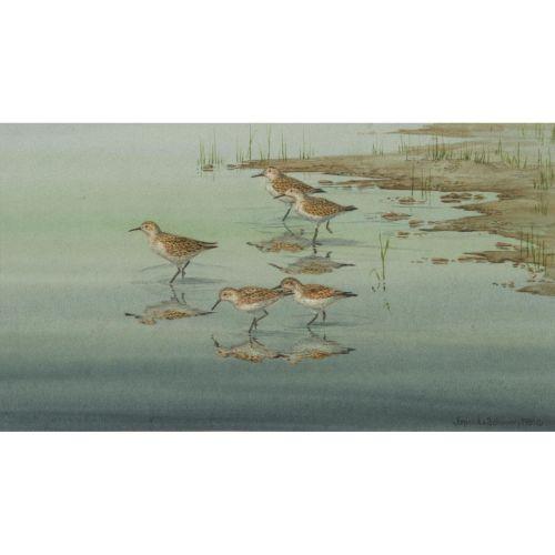 Two Watercolors. (1) Janeen Schissler (20th century) Western Sandpipers, 6 ¼” x 11 ¼”, signed LR, dated 1984. (2) Lewis Jones, Untitled, 15" x 11" scratchboard, signed LR.