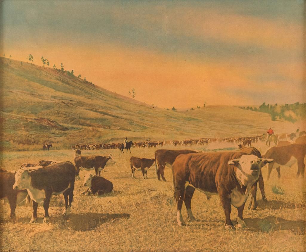 Jessamine Spear Johnson (1886-1978) Montana Roundup 26" x 31" Northern Pacific Railway vintage photo Signed lower left $1,000-1,500
