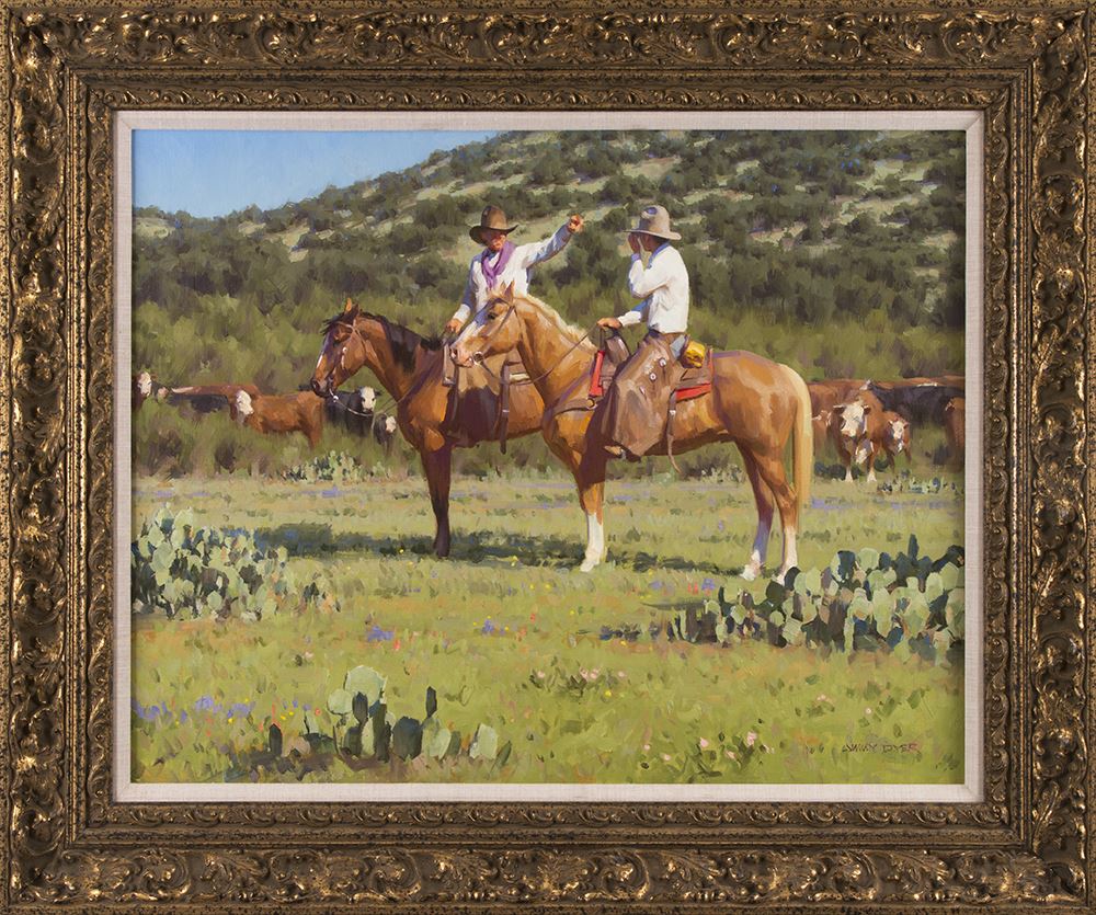 Jimmy Dyer (1956 - ). They Were Headed East. 22" x 28" oil on board. Signed lower right.