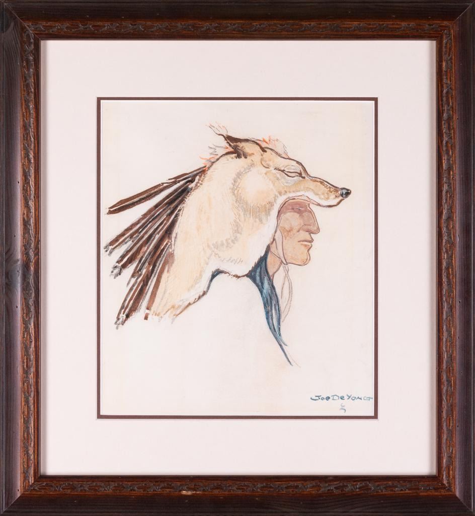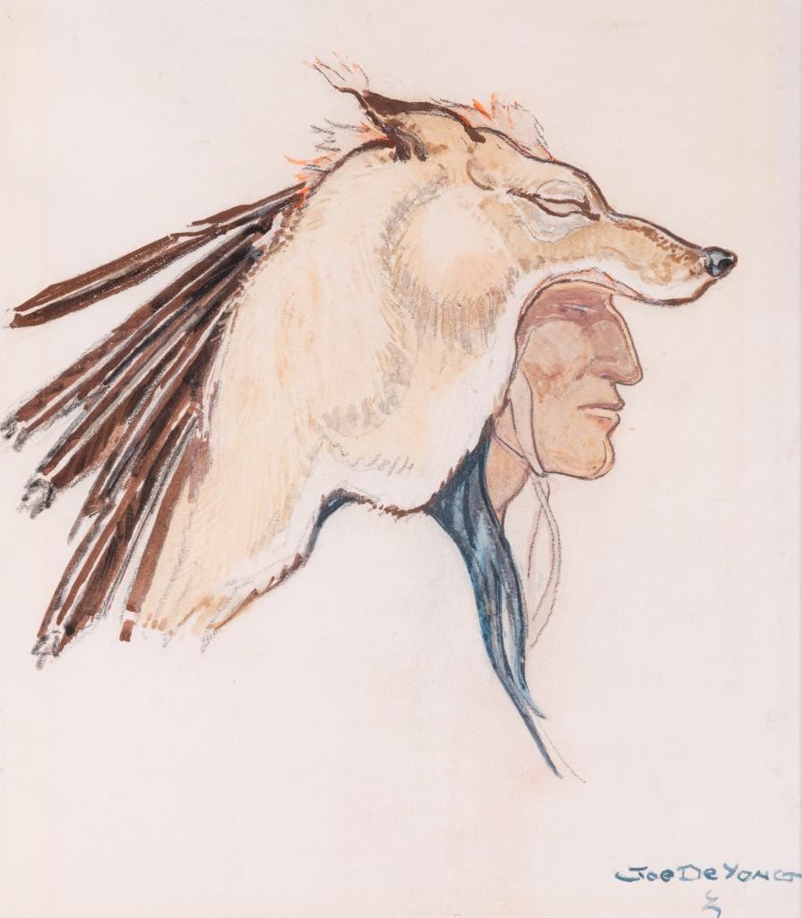 Joe de Yong (1894-1975) Sketch 12.5" x 10.75" mixed media Signed lower right Verso: "Sketch for proposed new insignia (coat of arms) for Medicine Hat 1947". $800-1,200