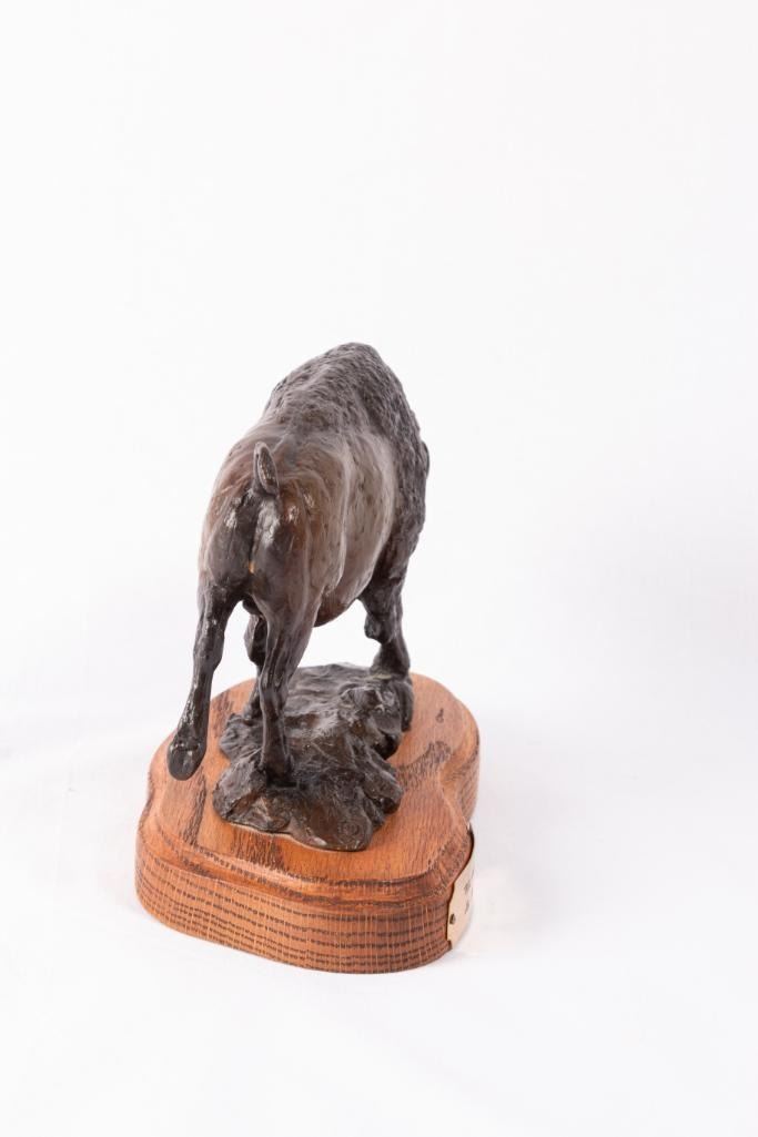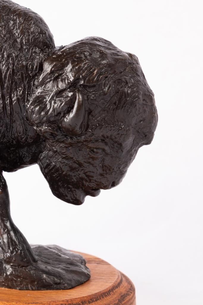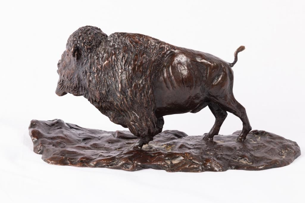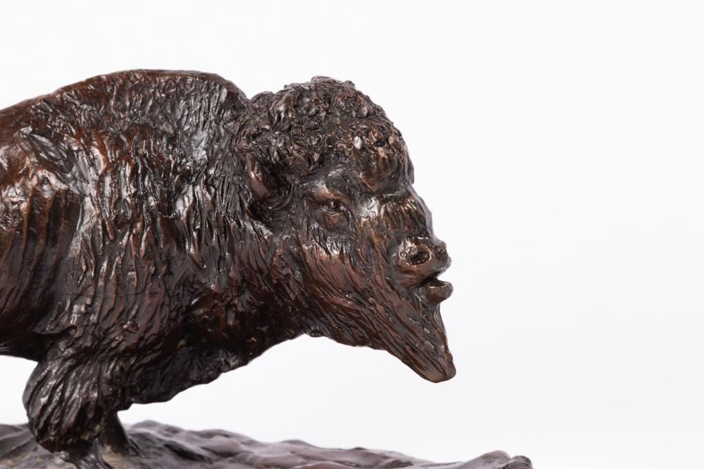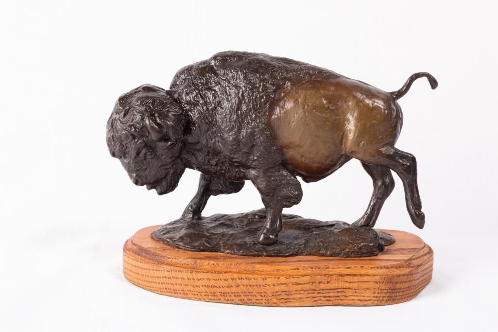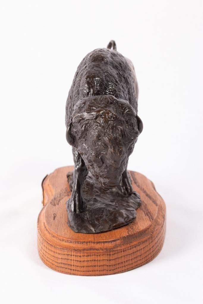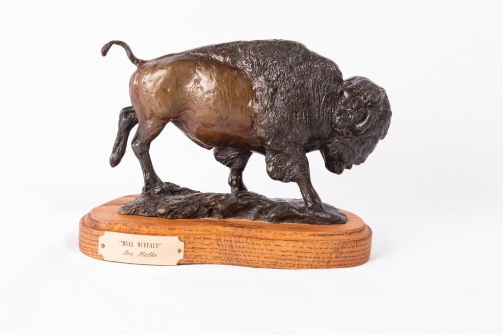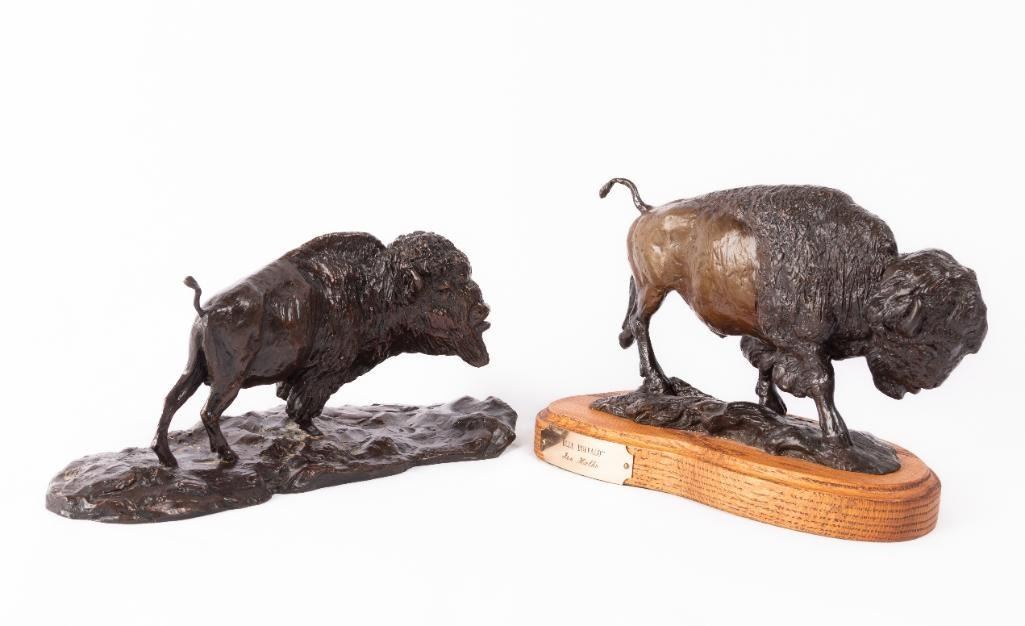 Joe Halko (1940-2009) Two bronzes: 1) Bull Buffalo 4" x 9" x 3" Inscribed: (c) Halko, NWR 26/50 2) Alert 5" x 11" x 5" Inscribed: Halko 10/12, (c) JAH-MAH '72. Stamped on bottom (c) JA Halko 1972 $1,200-1,800 Provenance: Private Collection, Great Falls, MT.