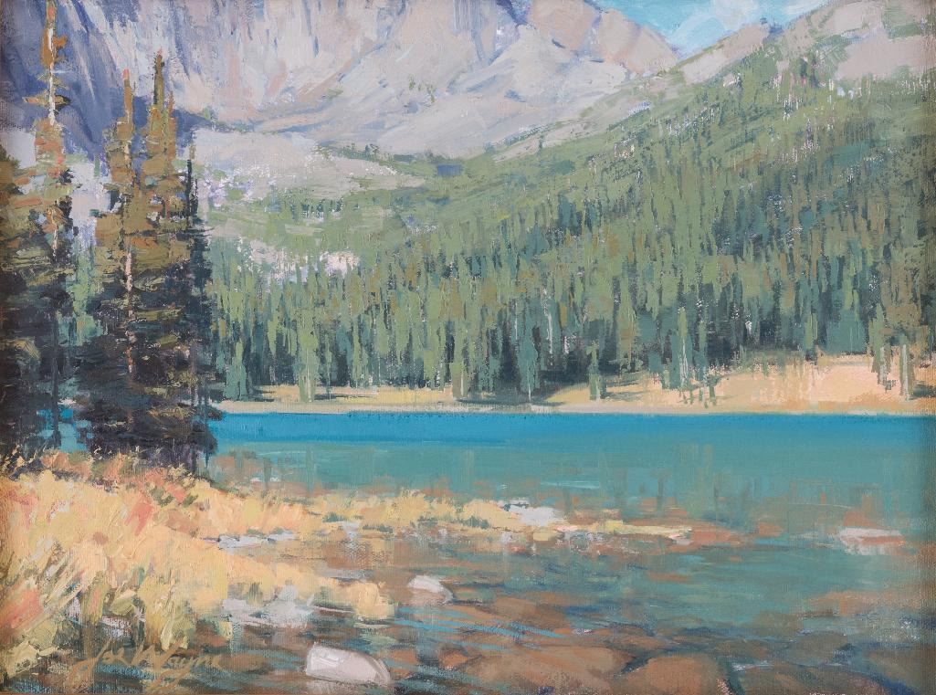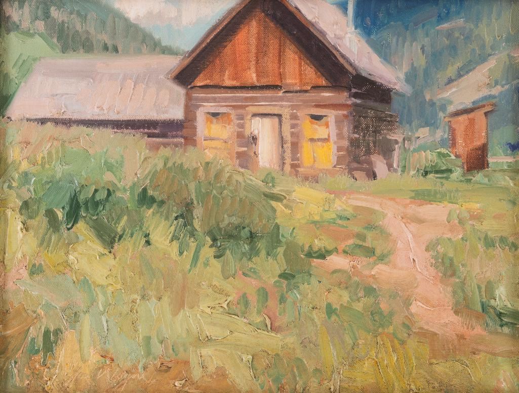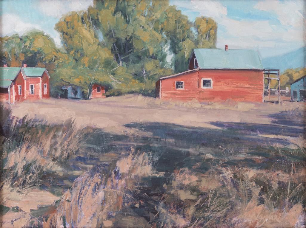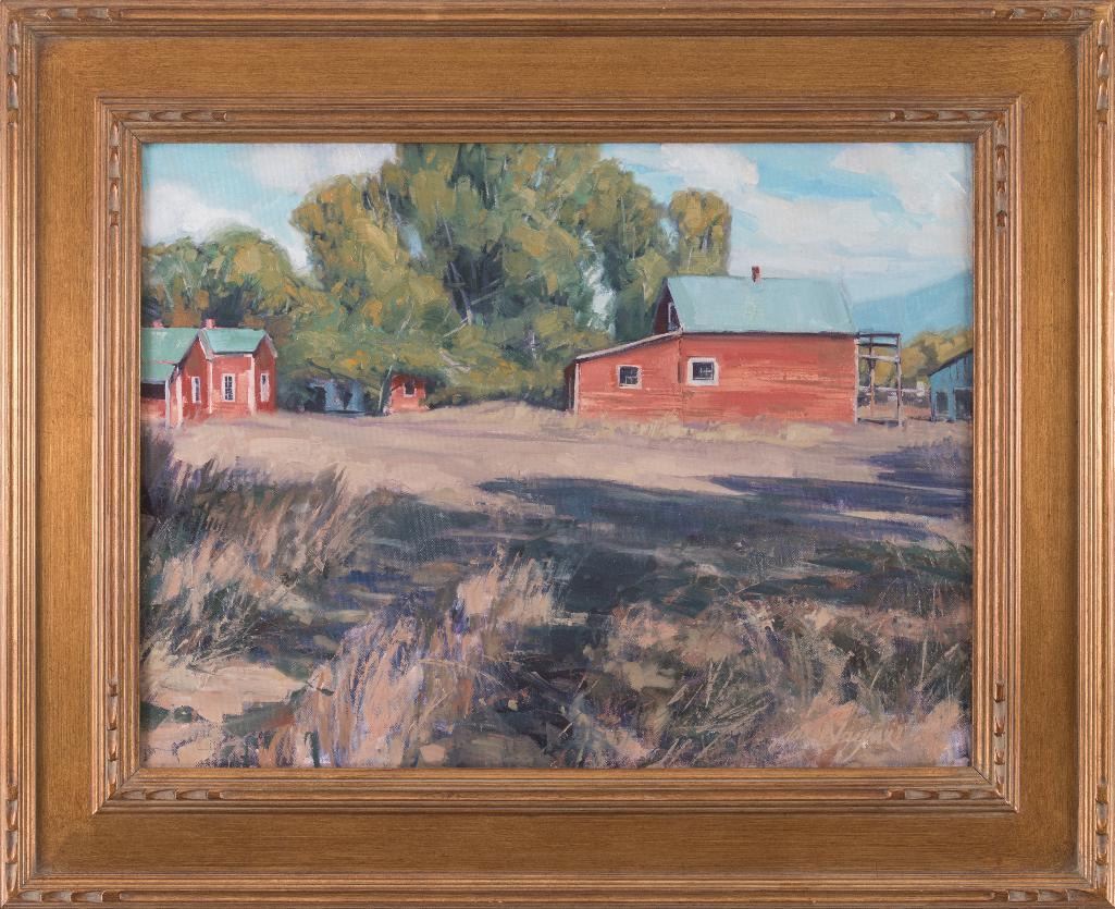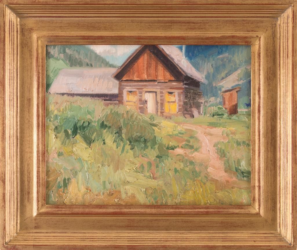Joe Wayne (1970 - ) Three oils: 1) Story Ranch Bunkhouse 18" x 24" oil on canvas Unsigned Verso: Titled and signed. 2) Wyoming Homestead 11" x 14" oil on board Unsigned Verso: Signed 3) Evening Light 12" x 16" oil on canvas Signed lower left $1,500-2,500