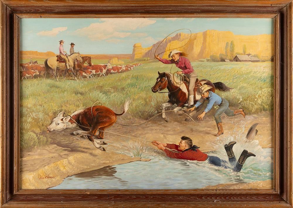 This painting was commissioned by the Lucchese boot manufacturing company and was intended to be used in advertising campaigns.