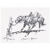 1) John Hampton (1918-2000)(CA) Charlie's Horse, 1890 8" x 10.5" pen and ink Signed and dated '80 lower left, titled lower center Together with three Bill Hill (1922-2009) pen and ink drawings: 2) Pack Horses 7" x 11" Signed lower left 3) Packing In 8.5" x 10" Signed lower right 4) At the Ready 11" x 8" Signed lower left $1,000-1,500