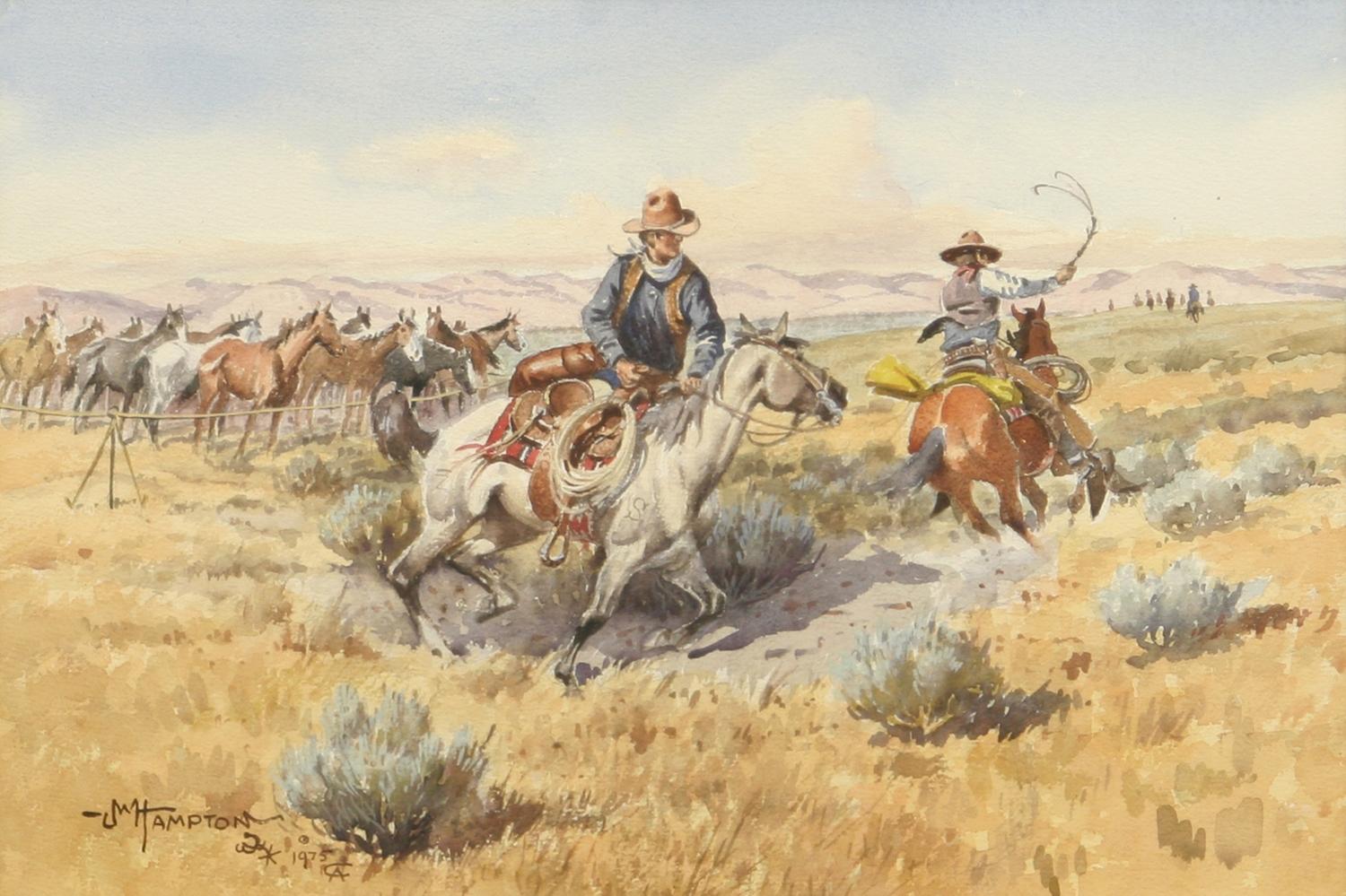 John Hampton (1918-1999), CAA. Catching Up. 14" x 21" watercolor. signed & dated 1975 lower left. (est $2,000-4,000) Condition Report: Excellent condition