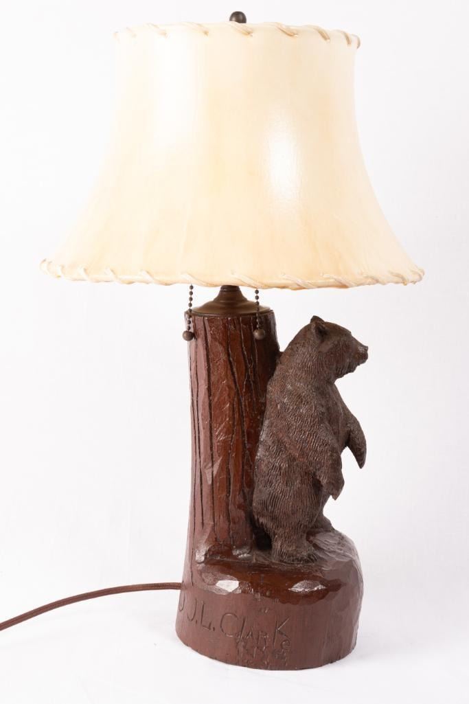 John L. Clarke (1881-1970) Bear Lamp 20" tall lamp woodcarving, 1925 Inscribed: (c) J.L. Clarke $5,000-7,000