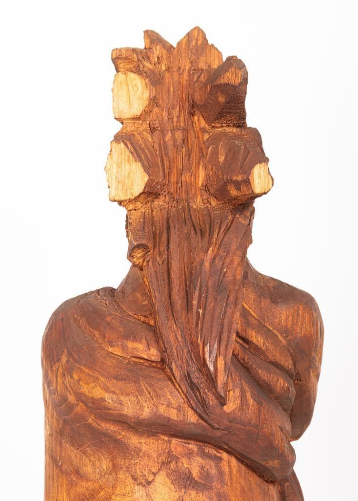This piece was originally part of a lamp, which was purchased at an estate sale in Tennessee several years ago. The lamp parts have been removed but holes can be seen at top and bottom of the woodcarving.