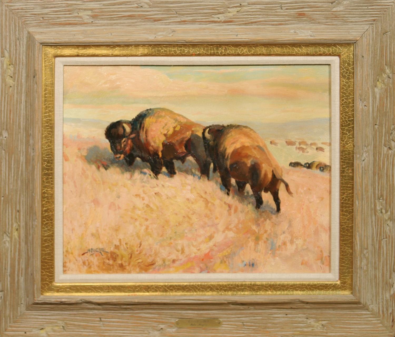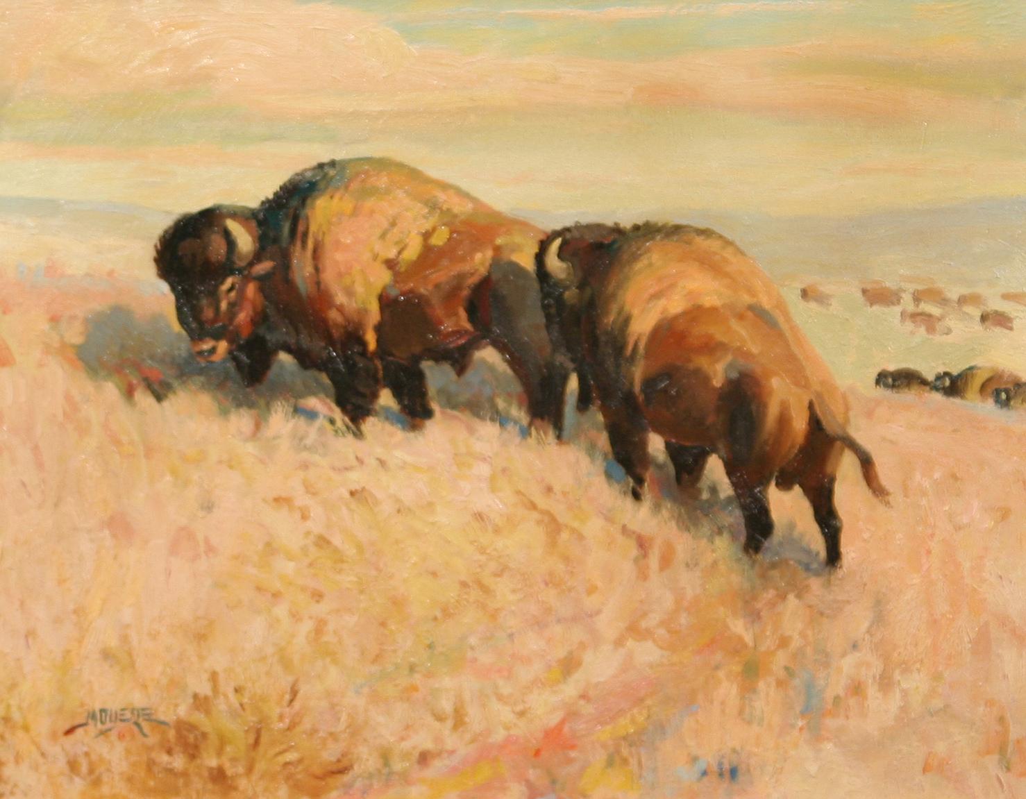 John Moyers (b. 1958), CAA. Buffalo Summer. 16" x 20" oil on board. signed lower left. (est $2,000-3,000) Condition Report: Black lights clean