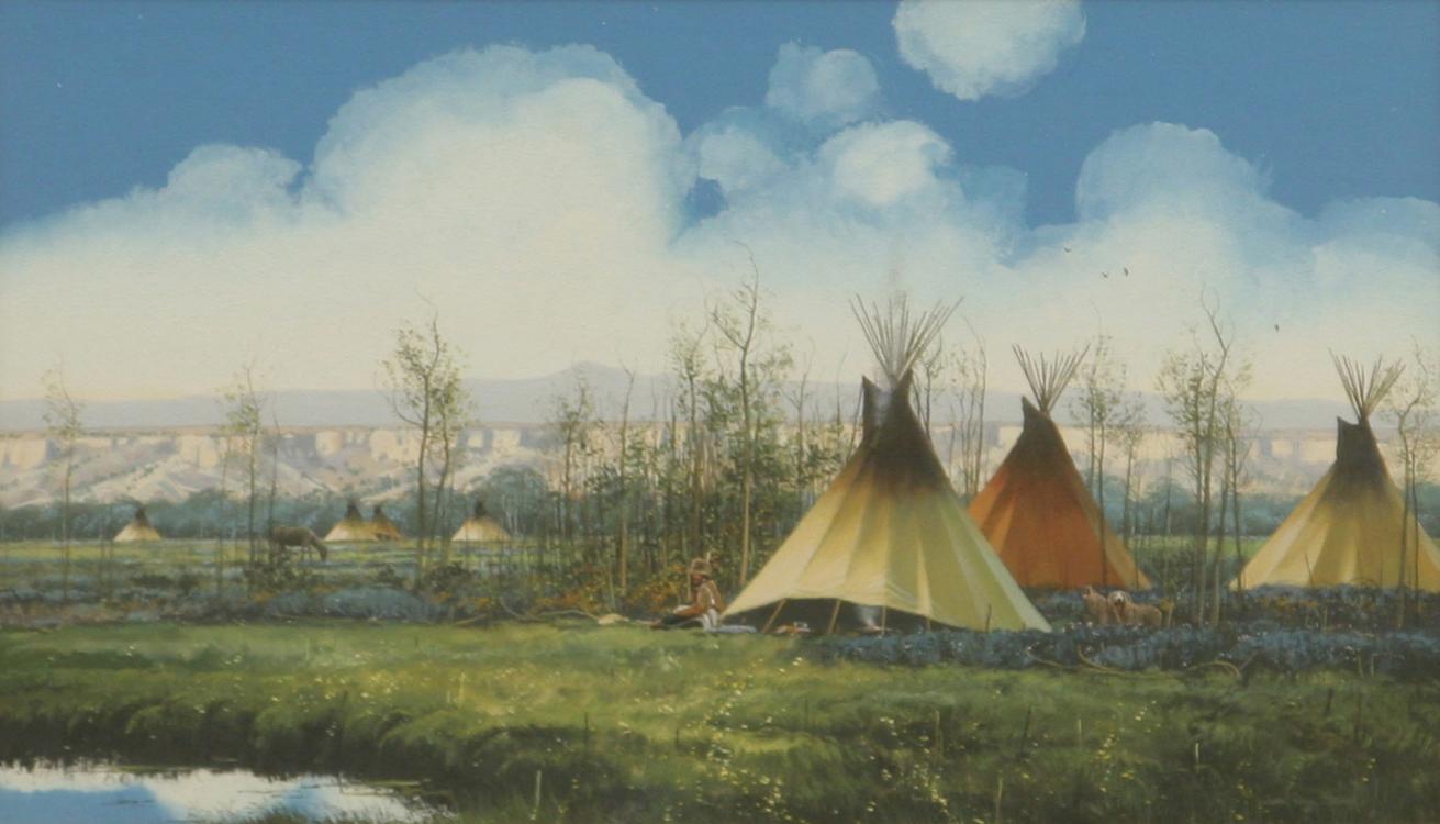 John Paul Strain (b. 1955). Summer Near Powder River. 7" x 12" gouache. signed and dated '87 lower right. (est $1,000-1,500) Condition Report: Excellent condition-nicely framed