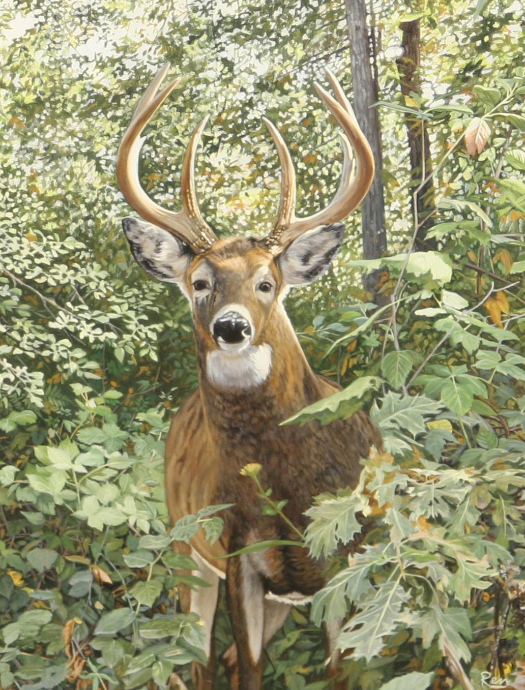 Jon Ren (b. 1970). At Close Range. 18" x 14" acrylic on board. signed lower right. (est $1,000-1,500) Condition Report: Black lights clean