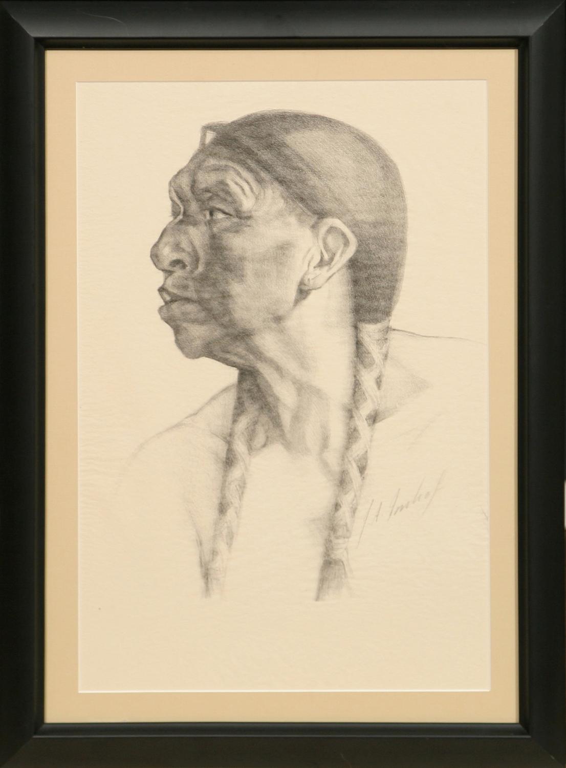 Joseph Imhof (1871-1955). Indian Portrait. 15 ½" x 10 ½" charcoal on parchment. signed lower left. (est $2,000-3,000) Condition Report: Excellent condition. Drawing is clear and crisp-signature strong