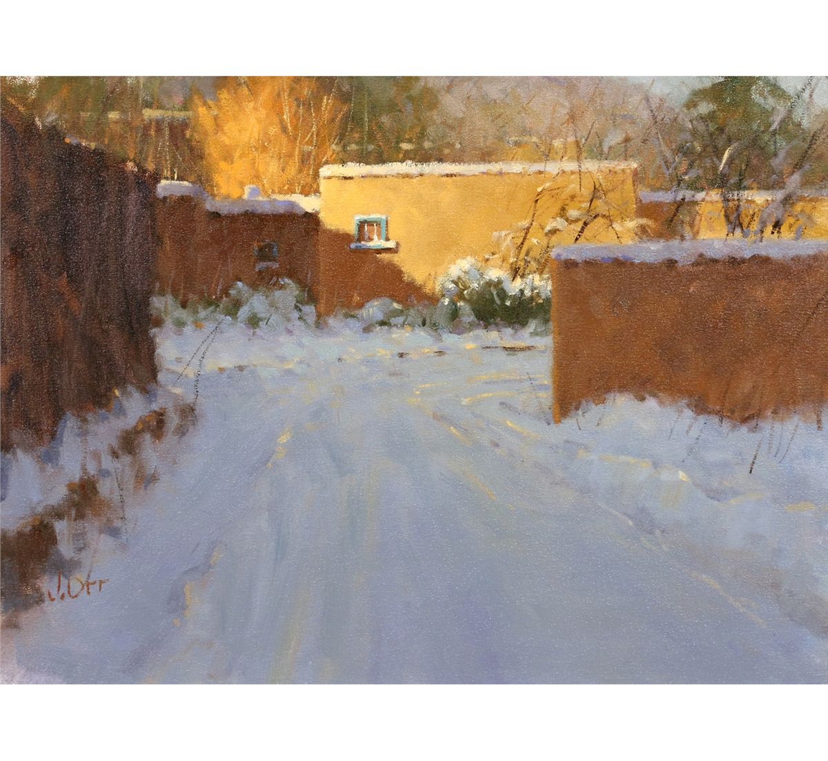 Joseph Orr (1949 - ). Santa Fe Dawn. 18" x 24" oil on canvas. Signed lower left: J. Orr. Verso: titled and signed on stretcher.