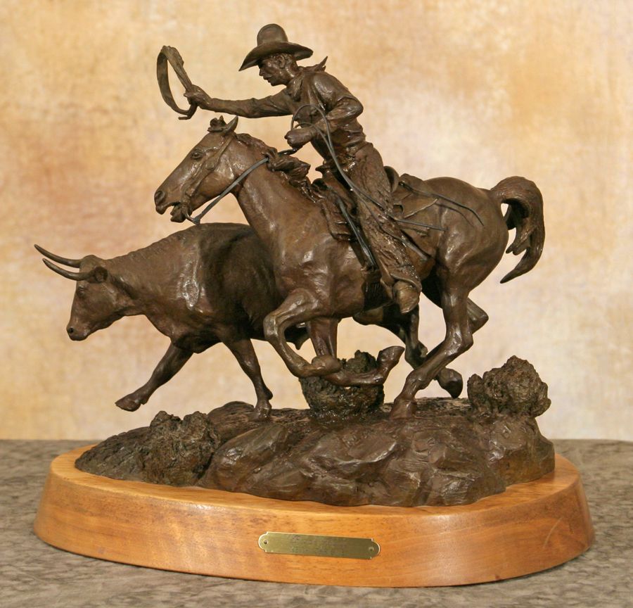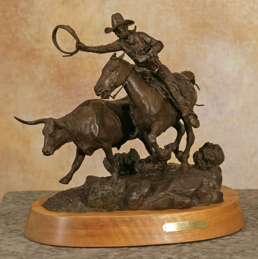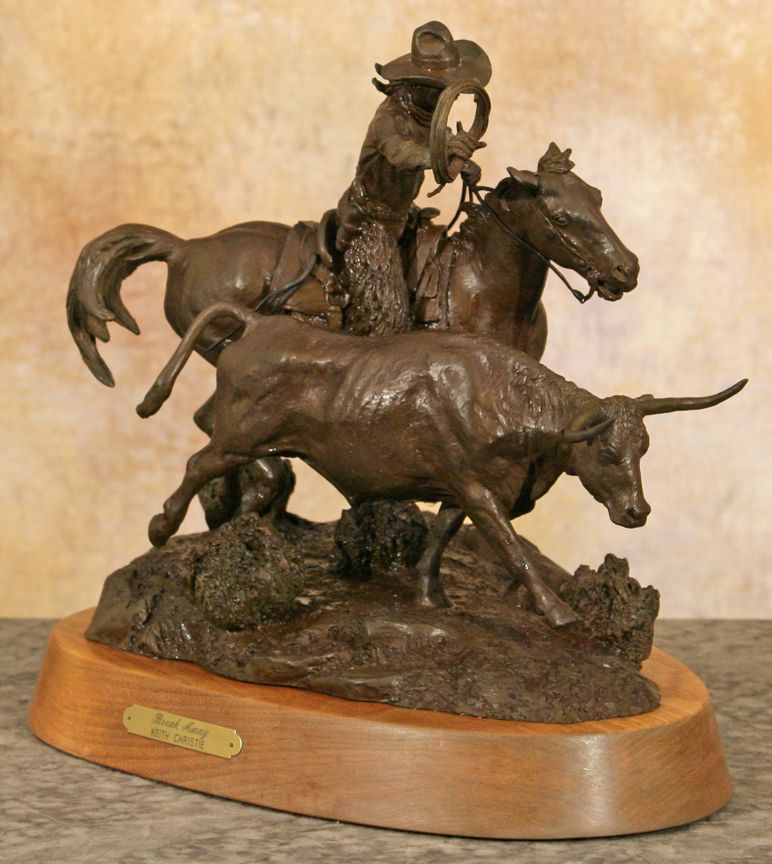Keith Christie (1935 - ). Break Away. 12" x 8.5" x 12" bronze. Inscribed: KEITH CHRISTIE © 1987 11/24. Condition reports can be viewed at www.marchinmontana.com/docs/2013CR.pdf