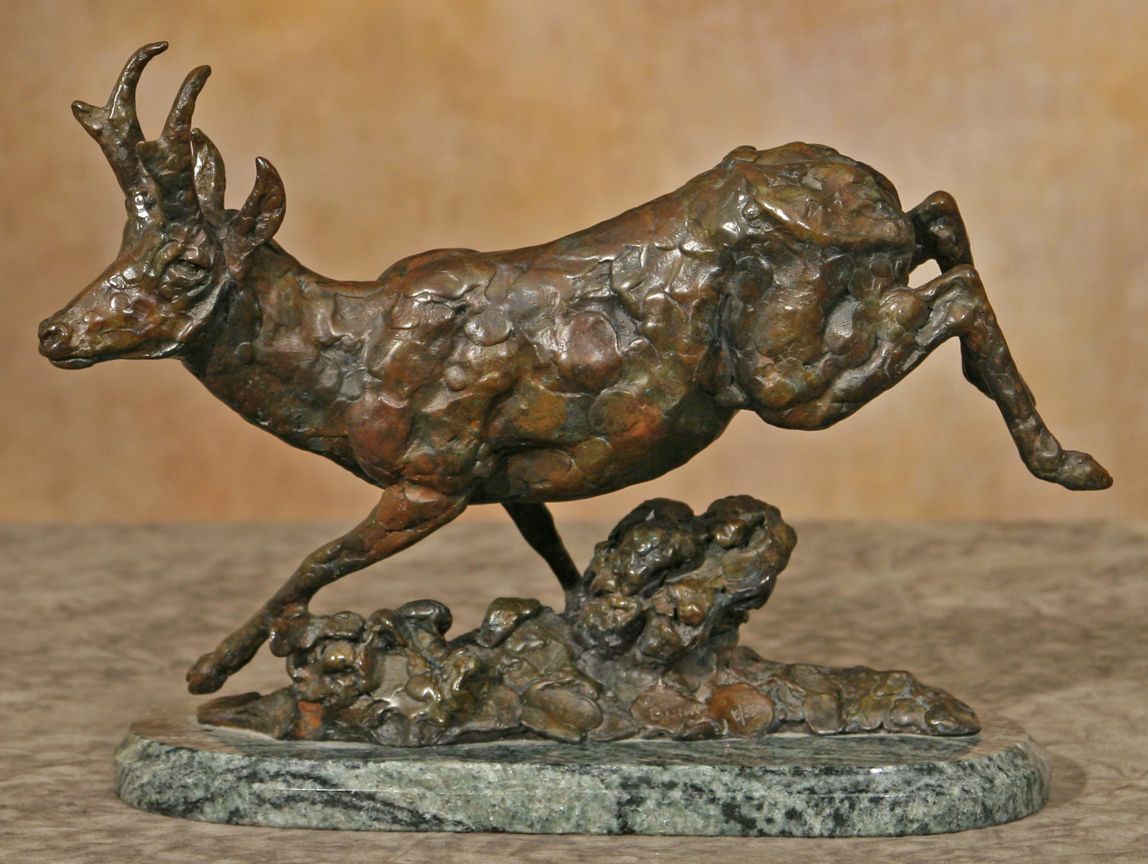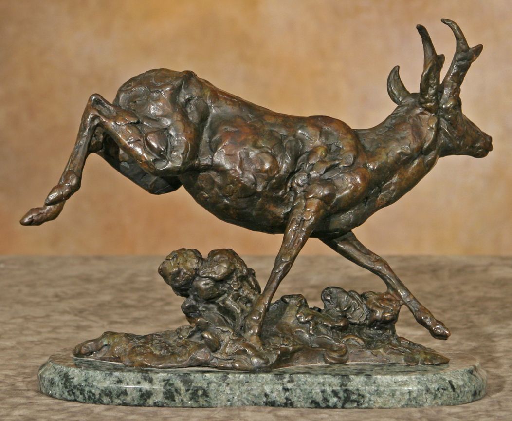 Kenneth Bunn (1938 - ). Pronghorn. 8.5" x 12" x 4.5" bronze. Inscribed: © Bunn 15/35. Condition reports can be viewed at www.marchinmontana.com/docs/2013CR.pdf