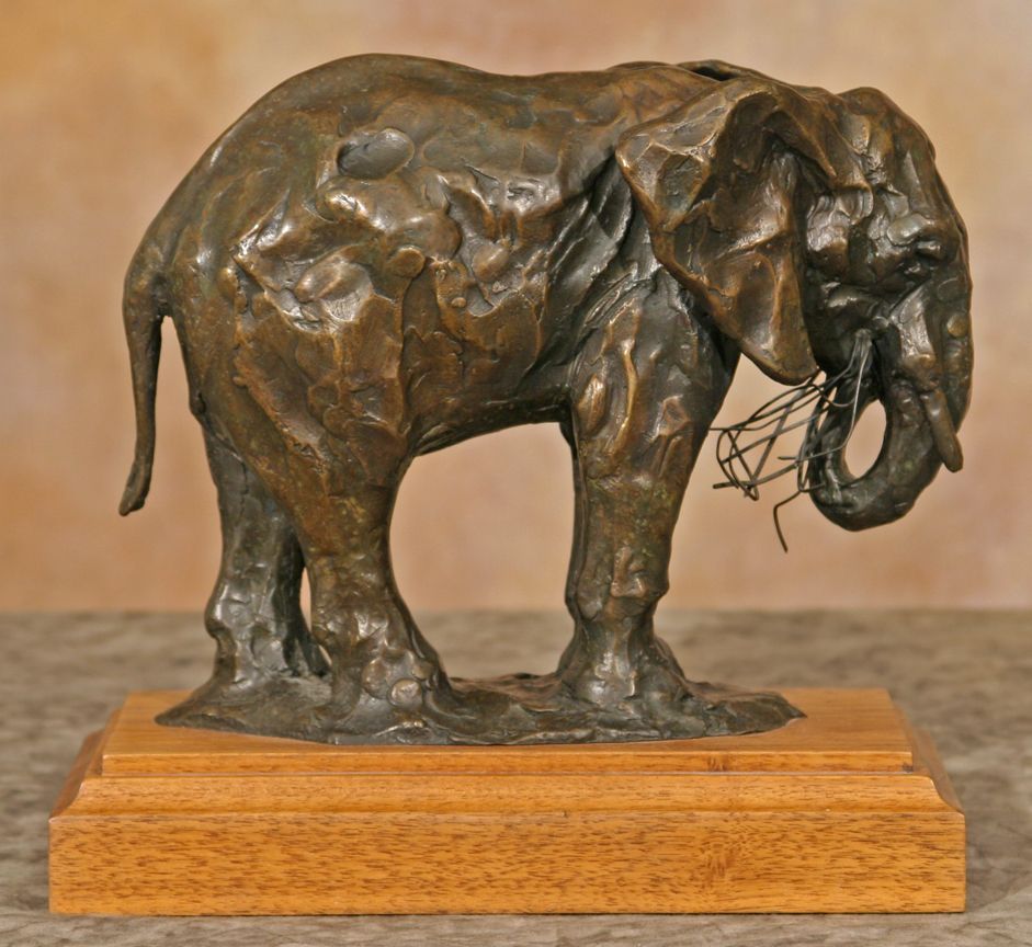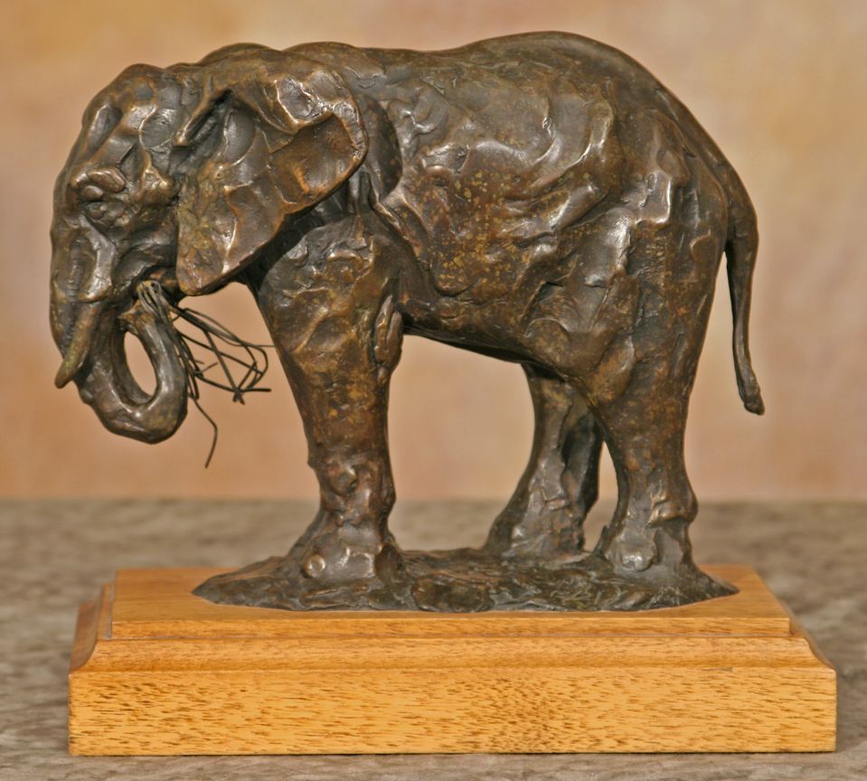 Kenneth Bunn (1938 - ). Young Elephant Feeding. 7.75" x 9.5" x 3.5" bronze. Inscribed: © Bunn 13/21. Condition reports can be viewed at www.marchinmontana.com/docs/2013CR.pdf