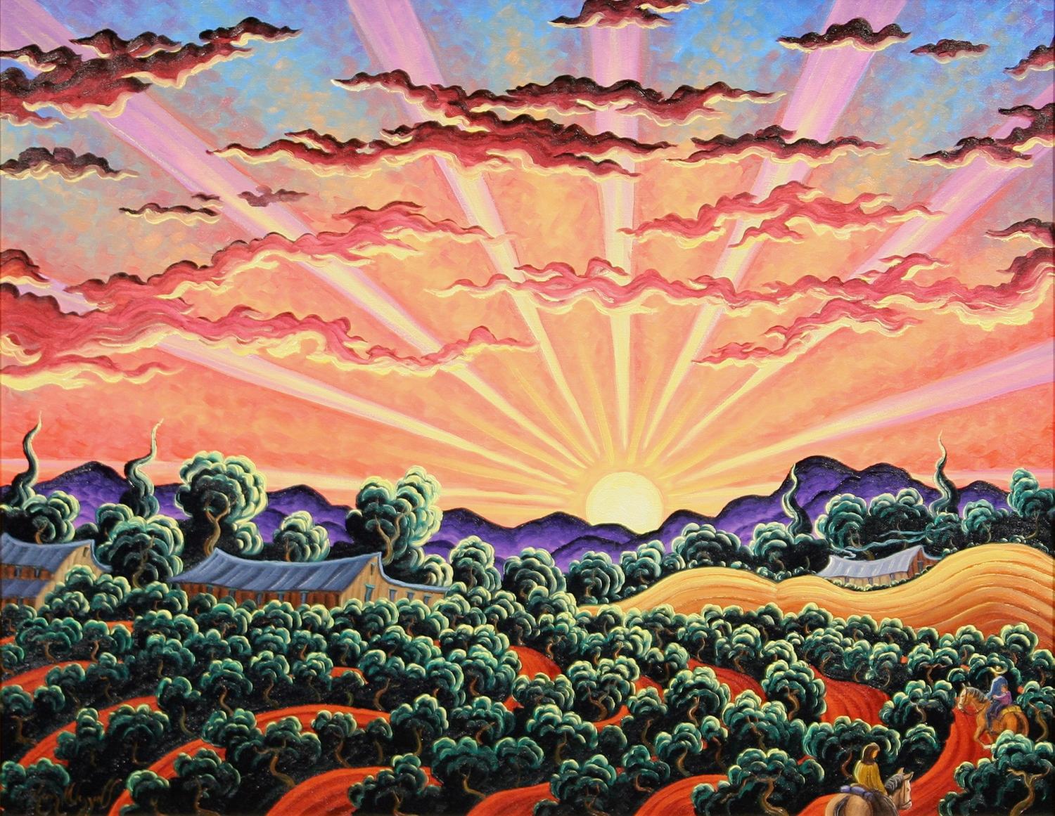 Kim Wiggins (b. 1960). A Ride Through The Vineyard. 24" x 30" oil on canvas. signed lower left. (est $6,000-7,000) Condition Report: Black lights clean. Nicely framed