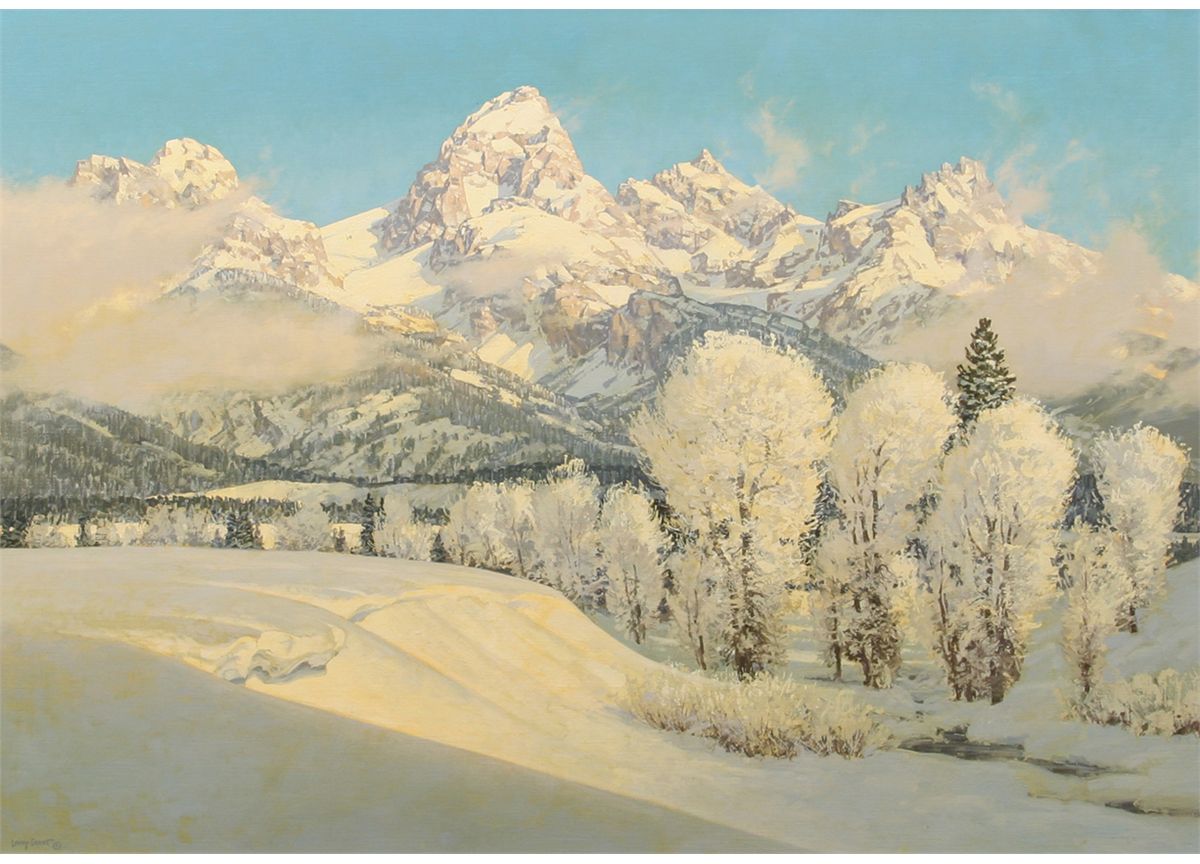 Lanny Grant (1953 - ). Season Of Silence. 36" x 48" oil on board. Signed lower left: LANNY GRANT ©. Dated 1997 verso. Provenance: Zoo Montana, Billings, MT. Condition reports can be viewed at www.marchinmontana.com/docs/2013CR.pdf