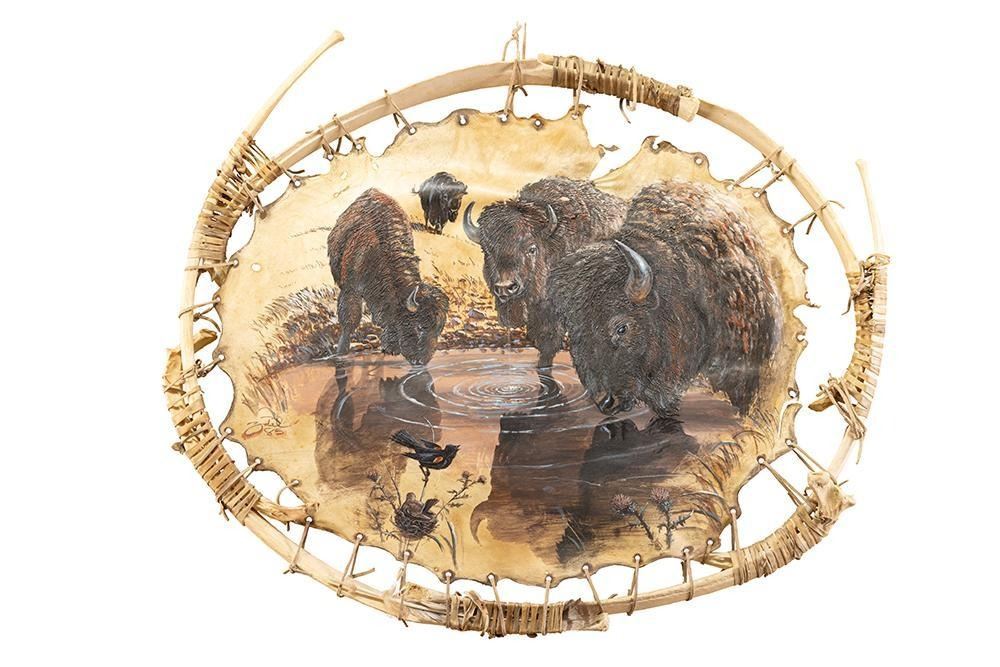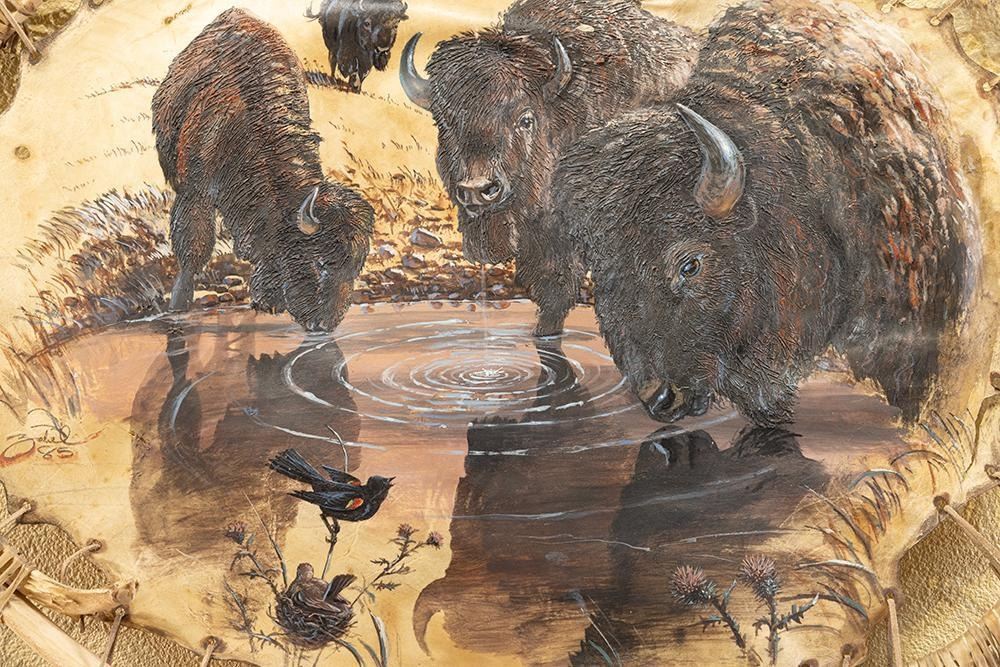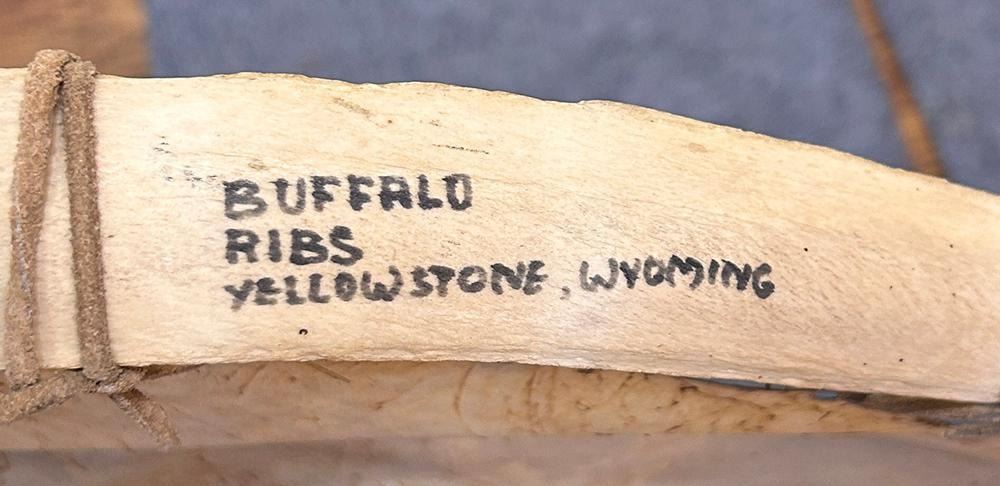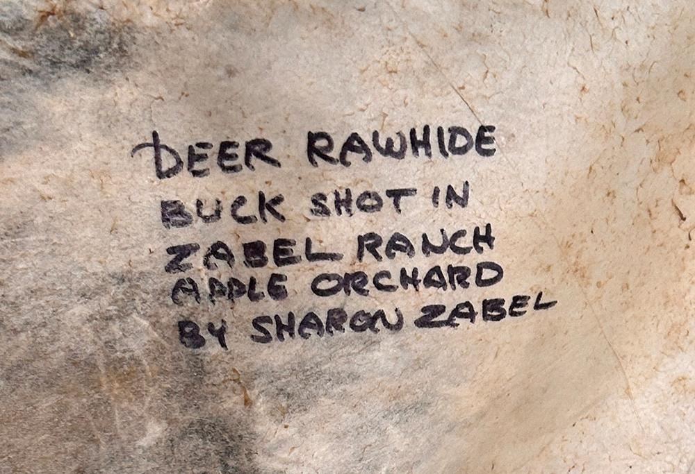 Verso: Buffalo Ribs Yellowstone, WY Deer Rawhide buck shot in Zabel Ranch Apple Orchard by Sharon Zabel.