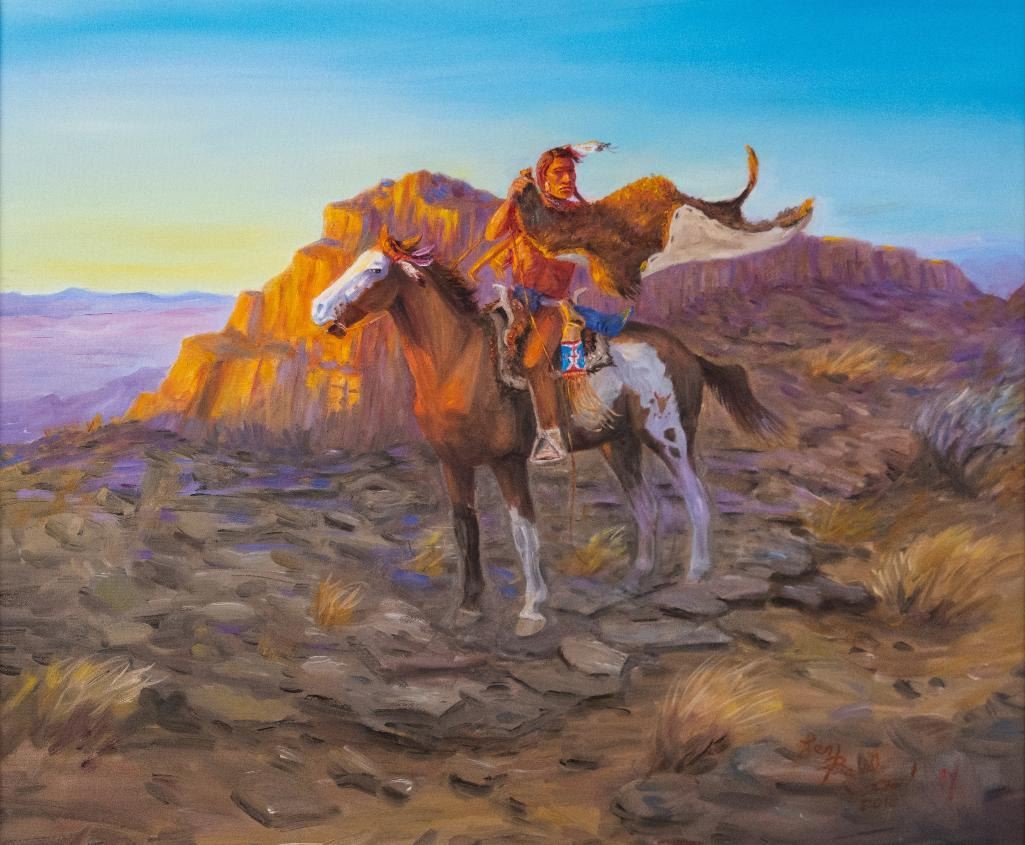 Len Babb Sighting the Buffalo 19" x 23" oil on canvas Signed and dated 2018 lower right Verso: Dated June 20, 2018. $1,000-1,500
