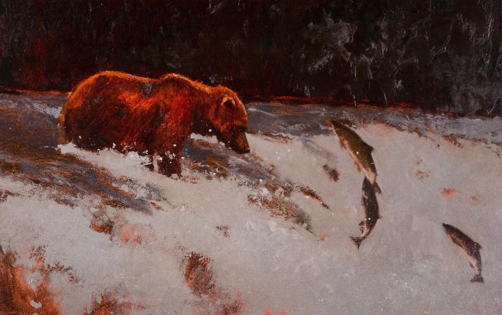 Luke Frazier (1970 - ) Circle of Life 14.5" x 22.75" oil on board Signed upper left Verso: Titled, signed and dated '94. Includes newspaper article attached "Luke Frazier, Painter". $3,000-5,000