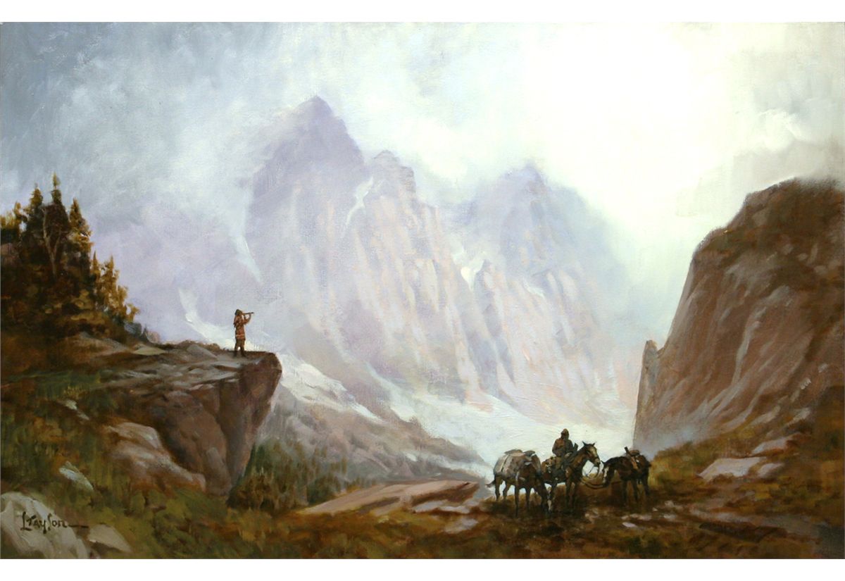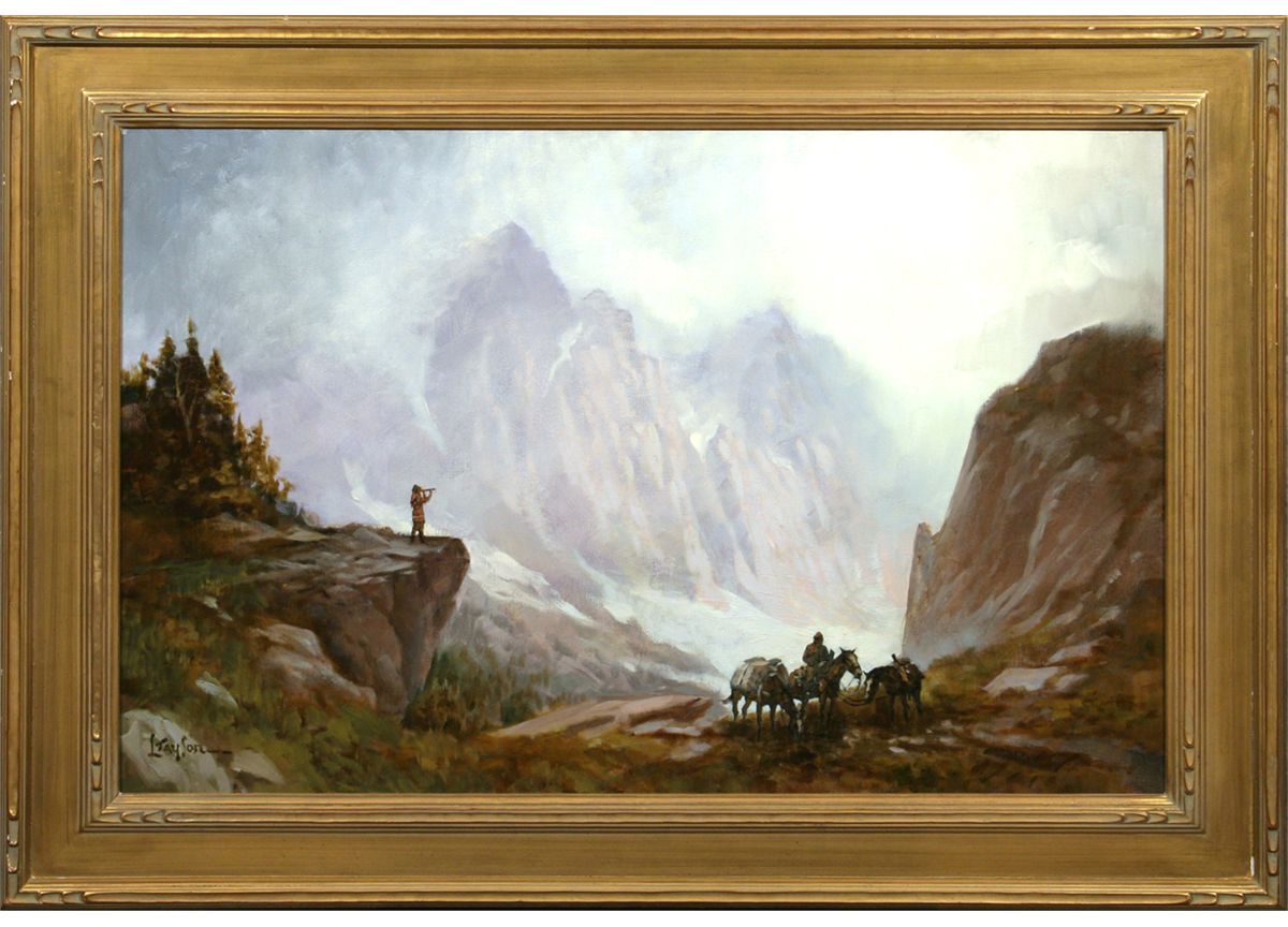 Lyle Tayson (1924 - ). At Lookout Point. 24" x 36" oil on canvas. Signed lower left: L TAYSON. Condition reports can be viewed at www.marchinmontana.com/docs/2013CR.pdf