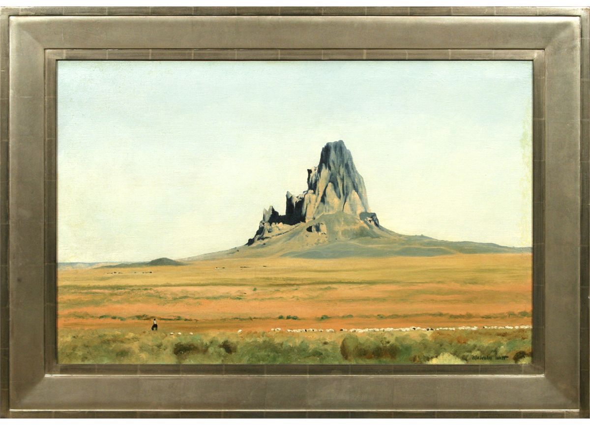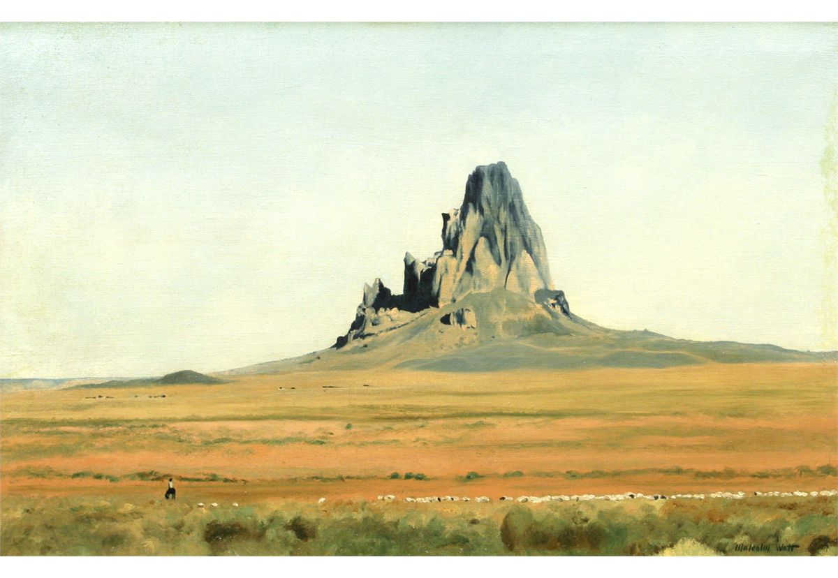 Malcolm “Sparky” Watt (1928-2002). El Capitan (Agathla Peak, Monument Valley, AZ). 24" x 36" oil on canvas. Signed lower right: Malcolm Watt. Condition reports can be viewed at www.marchinmontana.com/docs/2013CR.pdf