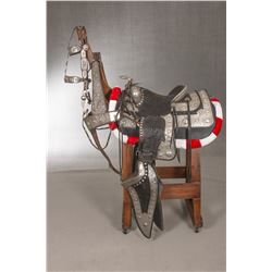 Carl Carlock Co. (Phoenix, AZ) Silver Mounted Tooled Parade Saddle . Together with bridle and martingale. Virtually covered with engravedsterling sil
