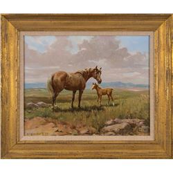 Olaf Carl Wieghorst (1899-1988). Mare and Foal. 16" x 20" oil on canvas. Signed lower left .