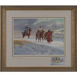 Ron Stewart (1941 - ). Days of the Coldmaker. 11" x 15" gouache. Signed lower left. Titled on mat. Detailed remarque on mat.