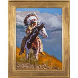 Duward Campbell (1951 - ) (AICA). Indian Territory. 30" x 40" oil on canvas. Signed lower left, AICA.