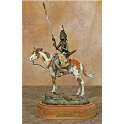 Dave McGary (1958 - ). When Lightning Strikes. Pair of bronzes. 7.5" x 17 x 7.5" warrior, with 6" pedestal base. 7.25" x 9 ¼...