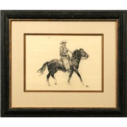 Robert Lougheed (1910 - 1982). Cowboy. 11" x 14" charcoal on paper. Signed lower left: RB,L. Condition reports can be viewed at www.mar...