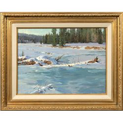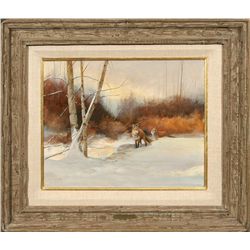 Mark Ogle (1952 - ). Winter Memory. 16" x 20" oil on board. Signed lower right: © MARK OGLE. Dated 1984 verso. Condition reports c...