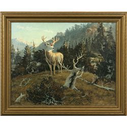 Terry Bateman (1942 - ). Deer In The High Country. 16" x 20" oil on canvas. Signed lower right: Terry Bateman '73. Condition report...