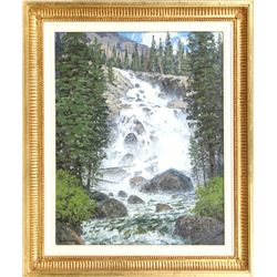 Lanny Grant (1953 - ). Hidden Falls. 20" x 16" oil on board. Signed lower left: LANNY GRANT ©. Dated 2008 verso. Provenance: Zoo Mont...