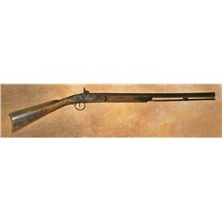 Northwest Trade Gun. Large calibre, 25" octagonal sawed off barrel. Cap & ball converted flintlock rifle. Brass trigger guard with a brass ...