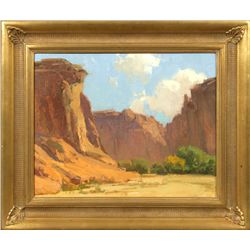 Bill Anton (1957 - ). A Touch Of Fall - Canyon de Chelly. 16" x 20" oil on board. Signed verso: Bill Anton ©. Condition reports ca...
