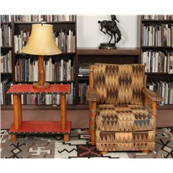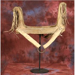 Northern Plains Child's Saddle. 17" x 18.5". Tacked designs on rawhide. Frame appears to be elk horn. 19th century. Provenance: Collec...